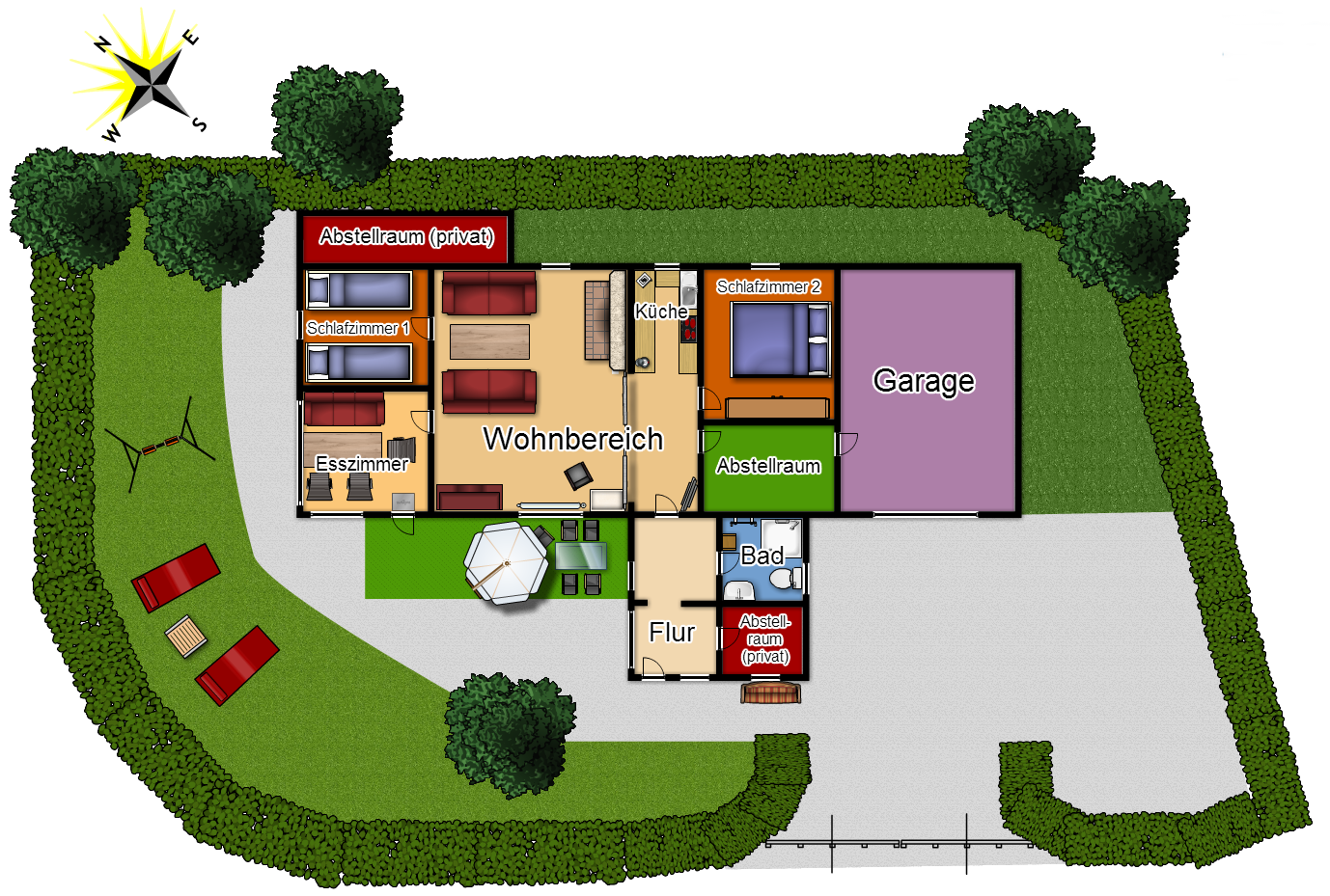 Unser Haus hat eine Wohnfläche von ca 70m² und ist komplett ebenerdig.